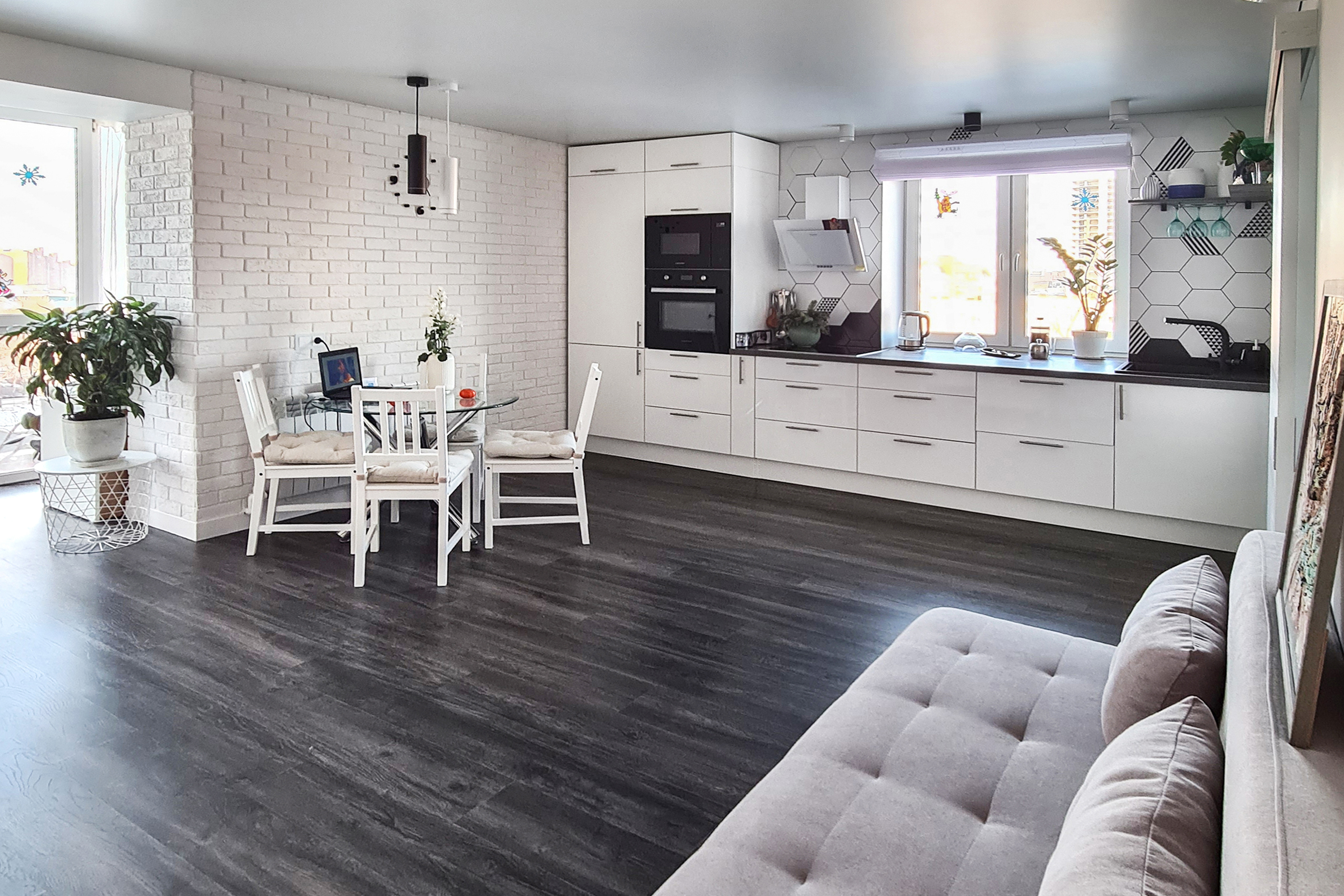 Stage: Completed Design: 2020 Area: 535 FT | 50 sq.m Budget: $$ Category: Interior This private apartment needed a full re-make after the client bought it. One bedroom apartment with a kitchen as a separate room was an example of prefab construction and was not fitting the modern lifestyle of the client. The main idea behind this project was the retribution of space. Some of the key decisions that contributed were: the relocation of the new kitchen to what used to be a living room, the creation of an en-suite bathroom, and a sunroom out of the existing balcony. By bringing private components, such as bedroom, on-suite, laundry, and closet, to their optimal size and configuration, a large, bright, and open kitchen/living/dining area was archived.